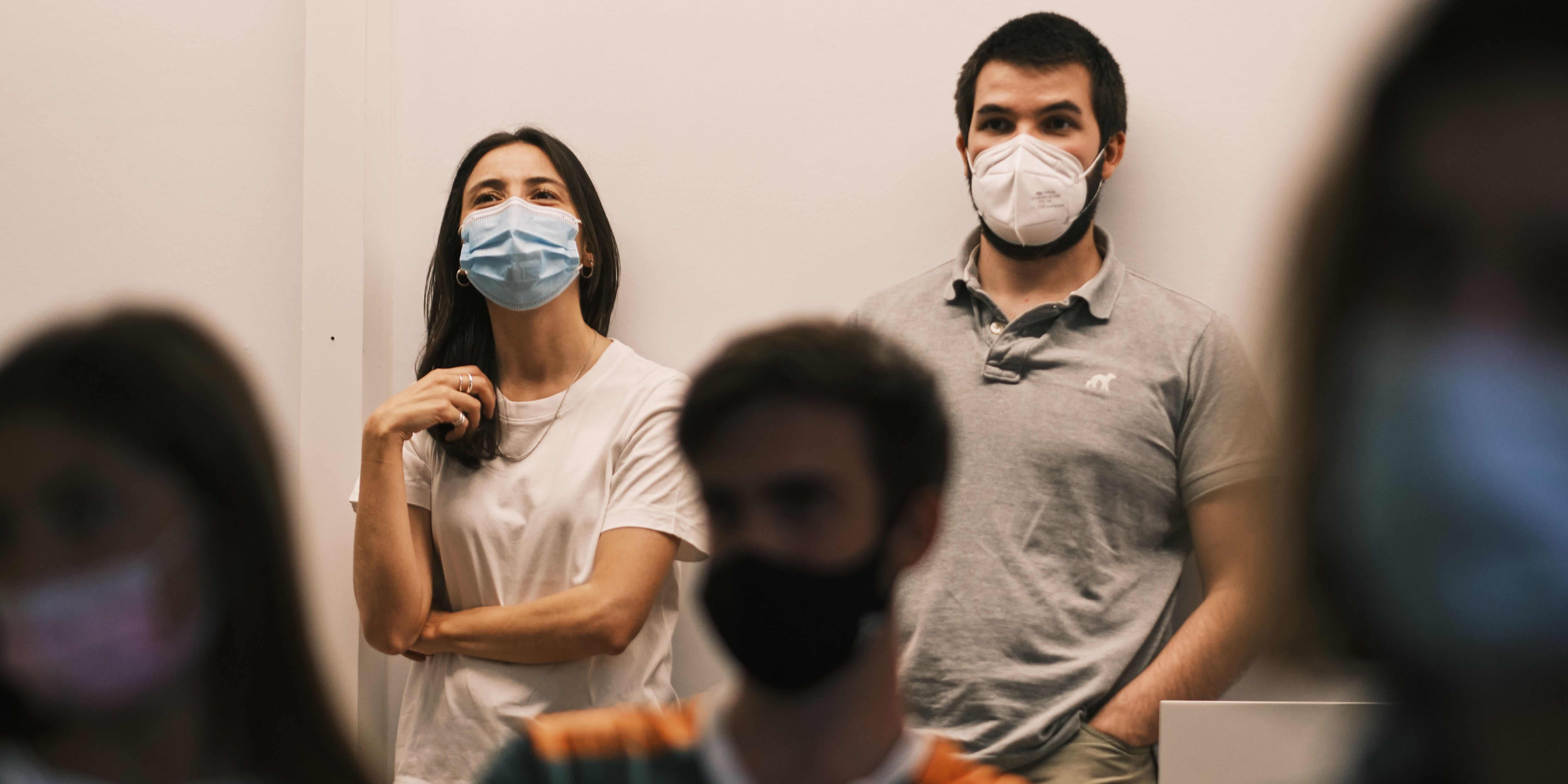 Mariana and João (Data Science Bootcamp Manager) during a Demo Day